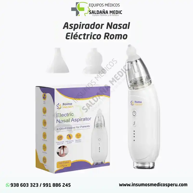 Aspirador Nasal Eléctrico Romo: succión suave y segura para aliviar la congestión nasal de forma cómoda y efectiva.