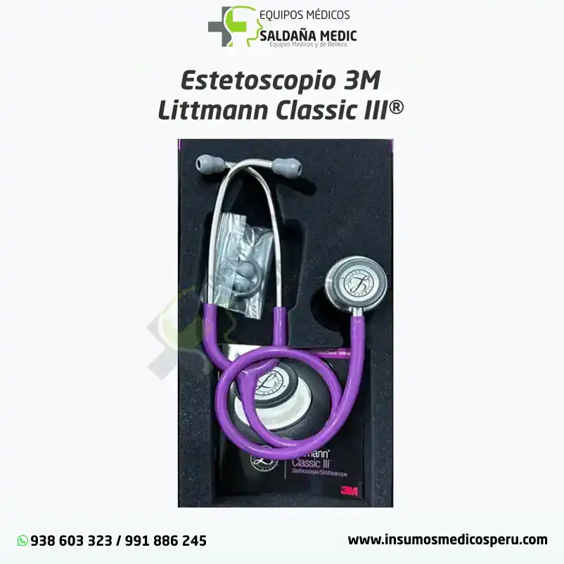 El Estetoscopio 3M Littmann Classic III es una herramienta de diagnóstico de alta precisión diseñada para profesionales de la salud que buscan confiabilidad, claridad acústica y durabilidad. Su doble campana con diafragma sintonizable permite auscultar sonidos de alta y baja frecuencia sin necesidad de cambiar de lado, facilitando evaluaciones rápidas y eficientes. Fabricado con materiales resistentes y un diseño ergonómico, ofrece un ajuste cómodo y un rendimiento constante incluso en jornadas largas. Ideal para estudiantes y profesionales en consultorio, hospital o clínica, el Classic III combina tecnología avanzada con la calidad y respaldo de 3M Littmann.