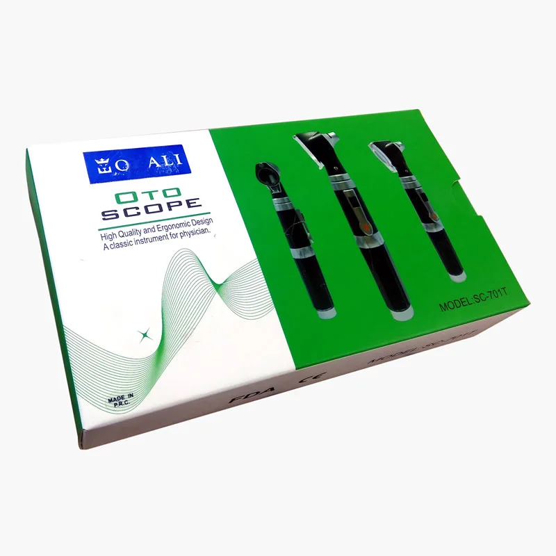 El otoscopio Ali SC-701T es un instrumento médico de alta precisión diseñado para la inspección del canal auditivo y el tímpano. Su diseño ergonómico y liviano facilita su uso prolongado sin fatiga, siendo ideal tanto para médicos generales como especialistas en otorrinolaringología.