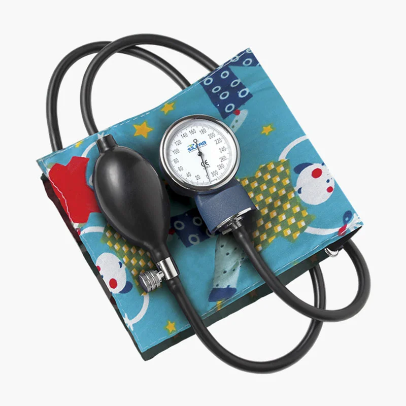 Este esfigmomanómetro aneroide pediátrico está especialmente diseñado para la medición manual de la presión arterial en pacientes infantiles. Su brazalete presenta un diseño colorido y decorado con figuras infantiles, ideal para crear un ambiente más amigable y reducir la ansiedad en los niños durante las consultas médicas.